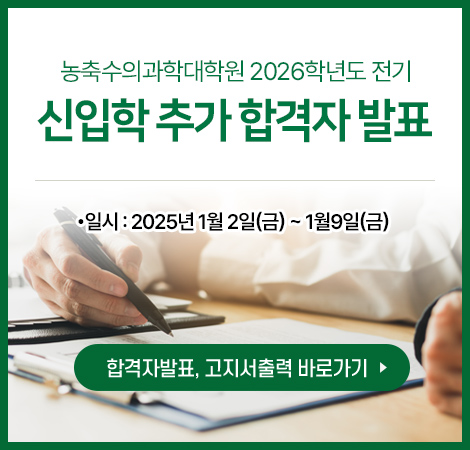 2026학년도 전기 신입학 전형 추가 합격자 발표 및 신입생 등록 안내1. 합격자발표 및 합격통지서 출력안내 가. 합격자발표(합격 통지서) * 발표일시 : 2026. 1. 2.(금) 11:00부터 * 합격자발표 페이지 링크 : [합격자조회 및 등록금2025.12.31READ MORE